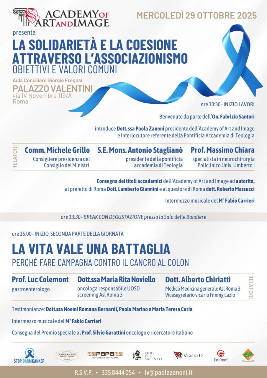 Il 29 ottobre 2025, presso il prestigioso Palazzo Valentini di Roma, nella Sala Consiliare Giorgio Fregosi, si terrà l’evento: “La Solidarietà e la Coesione attraverso l’Associazionismo: Obiettivi e Valori Comuni”, promosso da “Academy of Art and Image”.